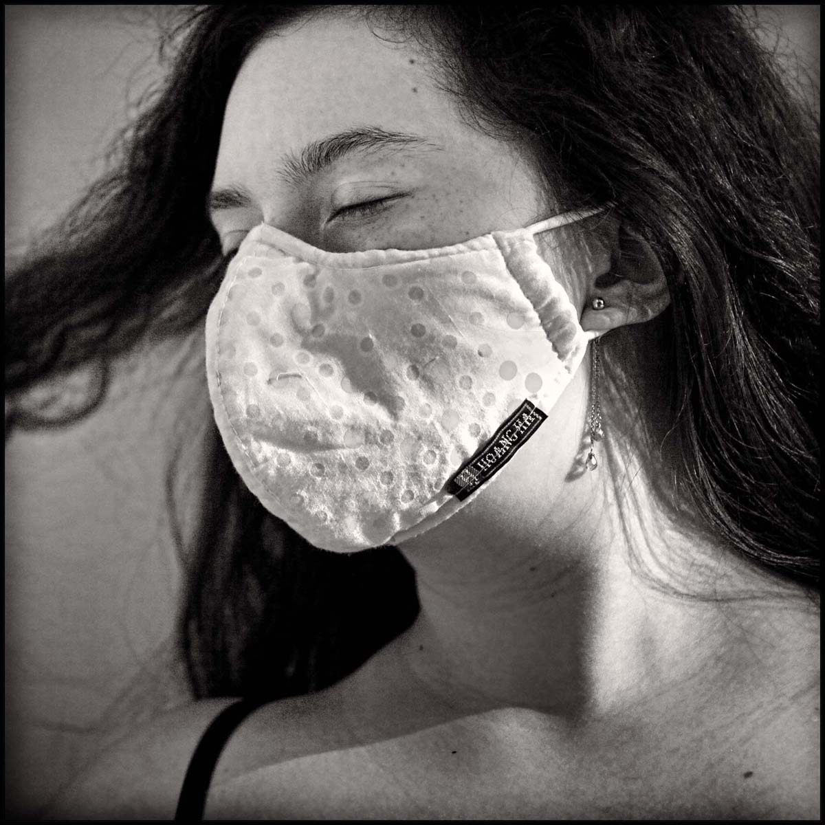 Thì cô bạn của tôi bảo, khẩu trang có bán đây này. Quán nước nằm bên bến đò và đường cái, năm cái bàn mây nhìn ra nước sông Hồng đang réo, ú ú đục ngầu, mì tôm, chè vối và bánh kẹo đặc sản địa phương. Con đường nhựa mới không có bụi, rất xa cái thời những mảnh chăn đào đắp có hoa thêu. Hoa thêu (hay đúng hơn là mẫu Burberry), là nằm trên nửa tá khẩu trang hời hợt móc vào cái đinh trên một cột chống hiên. Tôi mới tiến về phía bà hàng thì phà đến. Mấy ngày trước, cô bạn bảo, thứ này Hà Nội đâu mà chẳng có, nhưng 36 phố, tôi nhìn ngợp cửa hiệu Italy, D&G thì nhiều mà Lan & Điệp thì nào thấy, tuy trên đường đến một nửa phụ nữ xe máy là bịt mặt Ninja.