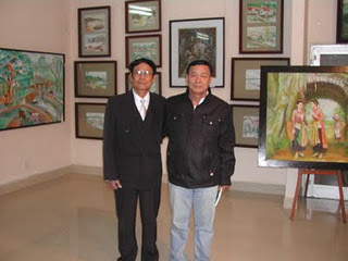 Nhà thơ Trịnh anh Đạt (đeo kính) và tác giả tại triển lãm “Mỹ Thuật Mùa Xuân”