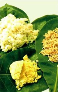Giở gói lá chuối bọc ngoài, bên trong là chiếc lá bàng rực rỡ roi rói tươi màu hổ hoàng, bao quanh những hạt ngọc xôi và bắp long lanh óng ánh, nằm ngoan dưới lớp đậu vàng mịn, bên trên điểm những khoanh hành hương xém nâu. Xúc một muỗng cho vào miệng, quyền quyện ngọt bùi những tặng phẩm mộc mạc ruộng rẫy bưng biền. Nghe những hương vị quê mùa thấm vào lưỡi qua khẩu cái trôi xuống cổ họng rồi vào bao tử, cảm thấy con tì con vị nở ra chín khúc tựa chín con rồng đồng bằng miền Nam.