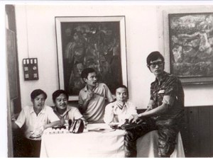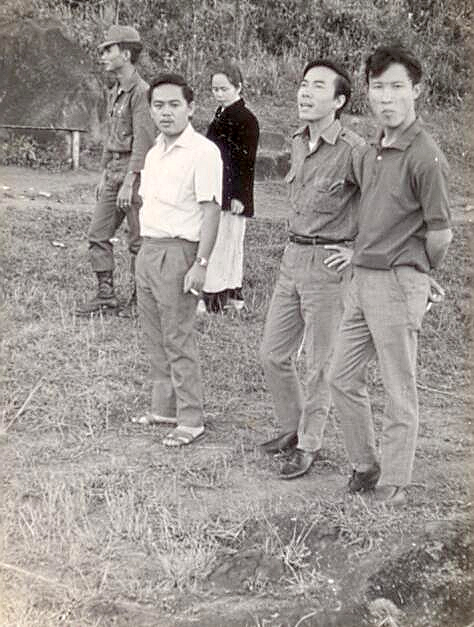 Biển Hồ Pleiku 1974 : một sĩ quan bạn, mẹ Kim Tuấn áo khoác đen, Kim Tuấn, Đinh Cường, một người bạn