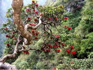 Đỗ Quyên vườn nhà hồng diện. Đại thụ Đỗ Quyên đỉnh Fansipan đỏ rực màu máu. Huyết lệ. Nước mắt máu. Rong bút về hoa lại liên hệ qua chim.