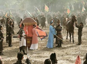 Nàng chỉ biết khóc. Nàng muốn nói không bao giờ nàng dám giận ngài, lúc nào nàng cũng kính yêu ngài, nhưng nàng không nói được. Nàng hôn tay ngài, hôn mãi cho đến khi bàn tay dày dạn vì kiếm cung suốt hơn 20 năm lạnh ngắt trong tay nàng. Lúc ấy nàng mới biết ngài đã chết mà vẫn ngồi yên trên sập ngự.