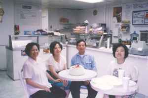 Vợ chồng Thủy-Long và hai con gái Thảo và Tiên tại tiệm Thiên Nga