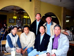 Từ trái: nhà thơ Nguyễn Tiến Đức, nhà thơ Nguyễn Hoàng Nam, nhà văn Lữ Quỳnh (đứng), nhà văn Nguyễn Xuân Hoàng, nhà văn Nguyễn Mộng Giác (đứng), Song Thao (Santa Ana, California, 12/2006).