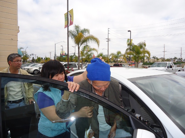 Nguyễn Thuỵ Dao Tiên đang dìu bố Nguyễn Mộng Giác lên xe