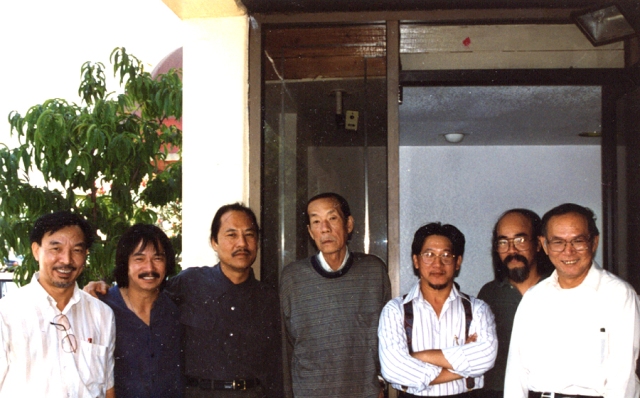 Từ trái: nhà văn Hoàng Khởi Phong, nhạc sĩ Lê Uyên Phương, họa sĩ Khánh Trường, nhà văn Mai Thảo, Phan Ni Tấn, nhạc sĩ Trần Duy Đức & nhà văn Nguyễn Mộng Giác (Nam California, 1989)