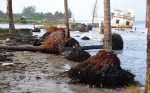 Những tàng dừa biển mọc sát đất xào xạc trong gió.