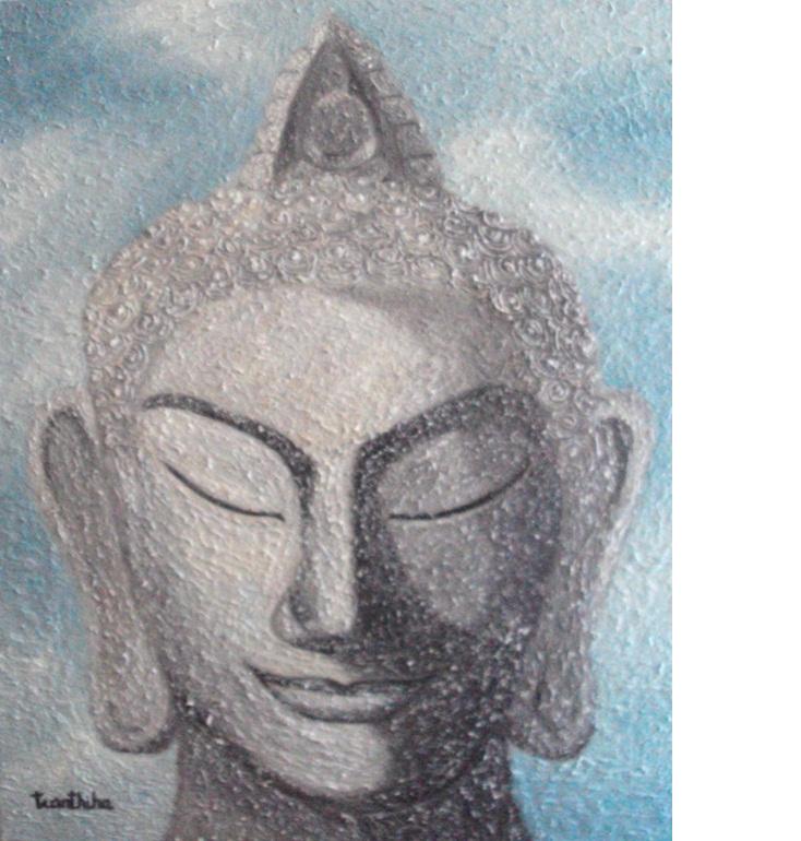 Bên trái phòng tranh là bốn bức tranh trừu tượng rất bề thế. Còn những bức tranh vẽ về Phật, tôi nghĩ khi sáng tác bốn bức “BUÔNG BỎ, THA THỨ, LUÂN HỒI và THIỀN” hs Hà đã cảm nhận rất sâu về đạo Phật. Bốn bức tranh gây cho khách xem tranh một cảm giác nhẹ nhàng sâu sắc về Đạo từ bi cũng như sự tái sinh của kiếp người.