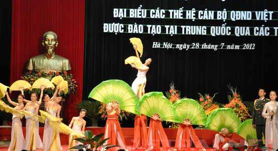 Vẫn thấy chưa đủ hiển thị tấm lòng hiếu hạnh, Bộ Quốc phòng VN đã hoành tráng tổ chức buổi gặp mặt đại biểu các thế hệ cán bộ QĐNDVN được đào tạo tại Trung Quốc qua các thời kỳ, long trọng chào mừng đồng chí Khương Tái Đông và đoàn đại biểu TQ, nhân dịp kỷ niệm 85 năm Ngày thành lập Quân Giải phóng Nhân dân Trung Quốc. Bộ trưởng Phùng Quang Thanh đã kính cẩn phát biểu: ‘Chúng tôi luôn trân trọng, ghi nhớ và mãi biết ơn sự giúp đỡ chí tình, chí nghĩa, to lớn có hiệu quả mà Đảng, Chính phủ, nhân dân và Quân Giải phóng Nhân dân Trung Quốc đã dành cho Việt Nam’.