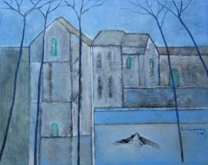 Nụ hôn chim phố mùa đông (sơn dầu trên bố 24 x 30 in) – Đinh Cường