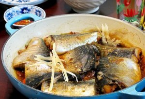 Cá mặn chưng gừng ăn với rau tập tàng, rau muống, đậu bắp, đậu rồng, đậu que luộc là món làm cho hơi bị tốn nhiều cơm. Không luộc rau mà ăn với dưa leo sống, đậu rồng sống cũng rất ngon. Trời mưa, dọn ra nồi cơm nóng bốc khói nghi ngút, trên mâm có tô cá mặn chưng gừng thịt ba rọi, ăn với rau mới luộc nóng hổi thì phong lưu cỡ Hoàng Đế Càn Long cũng phải “Cho trẫm xin một chén”.