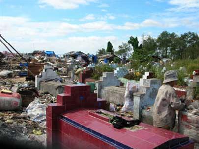 Nhà dân, bãi rác và nghĩa trang “sống chung” (Ảnh: M.H.)