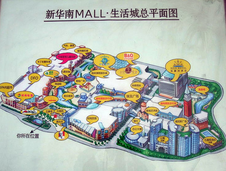 Danh hiệu Thương xá ma lớn nhất thế giới lọt vào tay The New China Mall, thuộc thành phố Donguan, phía đông của thủ phủ Quảng Châu, tỉnh Quảng Đông, với một sân đua xe trò chơi, bản nhái những thành phố nổi tiếng Amsterdam, Paris, Rome, Venice, Egypt, vùng biển Caribbean, bang California, và một dòng kênh nhân tạo…