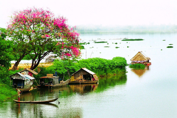 Mặt sông kìa, không xuồng, ghe, không cô gái nón mê che tóc huyền. Con sông quả thật hết thuyền, vài con tàu lượn ngỡ duyên hải nào. Sóng trên sông cuộn ào ào. Gió trên sông có tắp vào câu thơ?