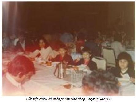 Sau 2 giờ bay, chiếc Airbus hạ cánh xuống phi trường Tokyo, chúng tôi theo hành khách vào sảnh đường. Người đông như kiến, sảnh đường quá rộng, sang trọng, choáng ngợp. Chúng tôi như lạc vào một thế giới mới, chưa một lần nhìn thấy, đứng túm tụm thành một đám, ngơ ngác. Hai người Nhật com-lê, cà-vạt sang trọng đến, cúi đầu chào. Chúng tôi đáp lễ. Họ hỏi ai là trưởng đoàn. Tôi đến, họ bắt tay, hỏi chúng tôi là ai, ở đâu đến. Tôi trình bày sự thật. Họ mời tôi vào văn phòng, xin mượn hồ sơ, ngỏ ý photocopy. Tôi nghĩ, chẳng có gì bí mật. Tôi đưa, họ phô-tô ngay tại chỗ. Họ bảo, đến 3 giờ chiều mới có chuyển máy bay 747 đi London, hành lý phi trường lo liệu chuyển, bây giờ về hotel nghỉ và dùng bữa. Tôi nói thật, chúng tôi không có tiền. Họ mỉm cười, nói các khoản miễn phí.