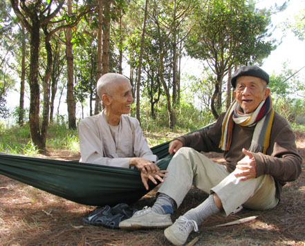 Thầy Tuệ Sỹ và nhà thơ Nguyễn Đức Sơn trên đồi Phương Bối
