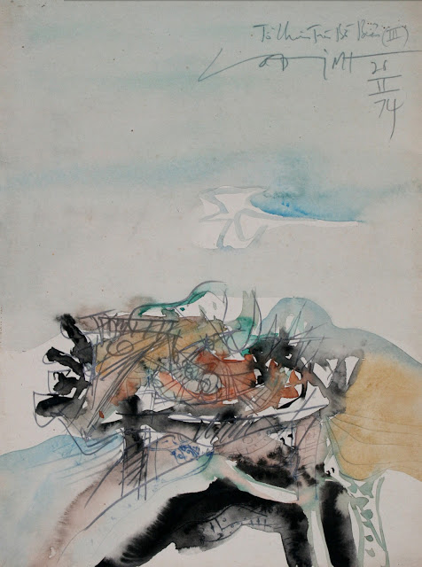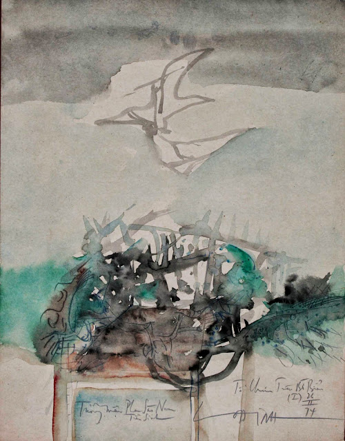 Tranh Võ Đình gửi Đinh Cường (màu nước trên giấy 11 x 14 in – 1977)