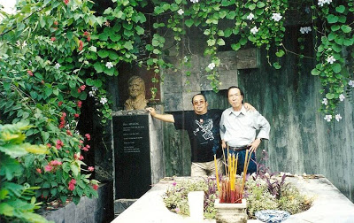 Bửu Chỉ và Đinh Cường bên mộ Bùi Giáng