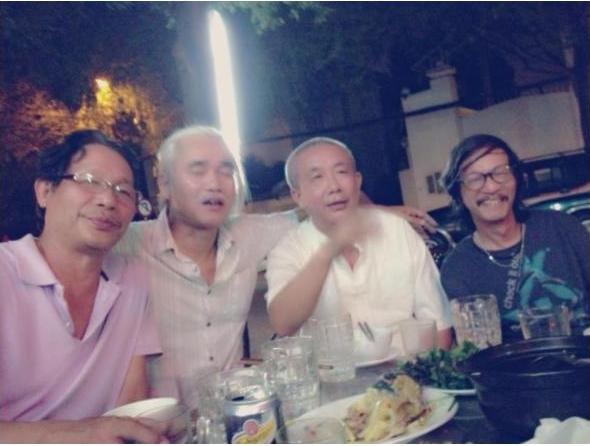 Tính tôi vốn (vô cùng) đa cảm nên nhìn mấy vị xồn xồn (từ phải qua trái: Đỗ Trung Quân, Nguyễn Quang Lập, Phạm Xuân Nguyên, Huỳnh Ngọc Chênh) có tên trong danh sách top 20 mà không khỏi sinh lòng ái ngại. Không phải tôi ái ngại vì cái bàn rượu quá hoành tráng so với tình trạng sức khoẻ (chắc) đã hom hem của họ mà là ái ngại khi nghĩ đến thân phận của những người cầm viết ở Việt Nam, trước đó.