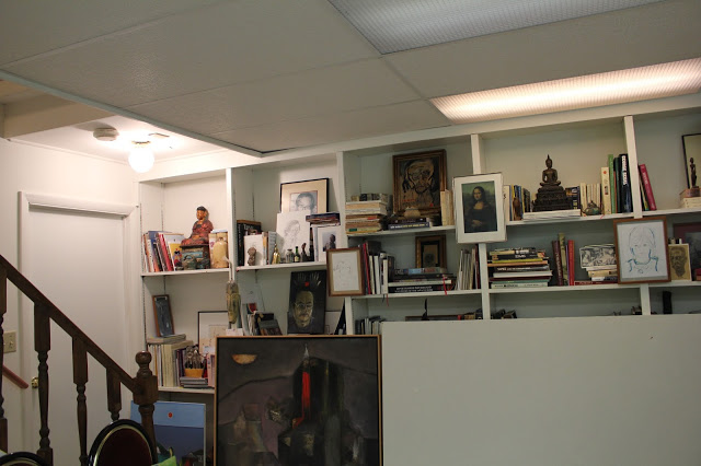 Tranh và sách. Sách và tranh. Nhiều, nhưng gọn gàng, ngăn nắp và thẩm mỹ.