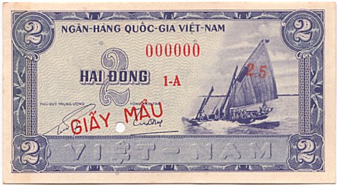Hình 3: Tờ bạc hai đồng, phát hành năm 1955