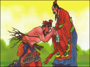 (Hai cận tướng qùi xuống trước Lạn Tương Như và Liêm Pha)