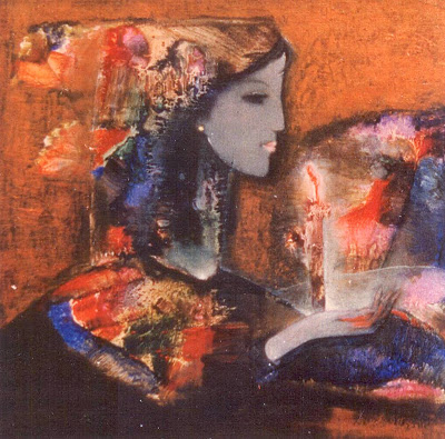(tranh sơn dầu như ứng với câu thơ Hoàng Trúc Ly: Cháy hoài dáng xưa…)