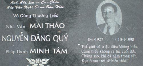 Tấm bảng lớn bự, dựng trước khu Song Long. Hàng thứ hai, kẻ chữ xanh, loại chữ in to, rõ: “Nhà may Thảo”. Tức nhà may áo quần tên Thảo. Vậy mà tôi đọc làm sao không biết, thành là “nhà Mai Thảo”.