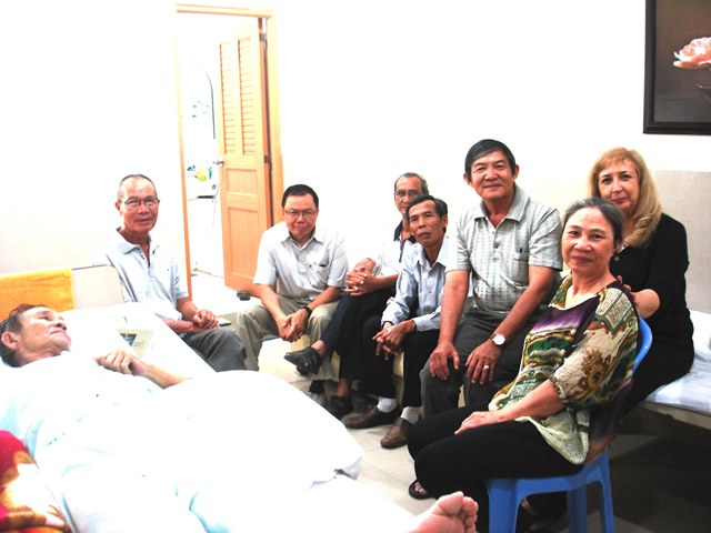 Vợ chồng tôi vào đến, thì đã có mặt một số anh em Quán Văn. Vợ chồng anh Trương văn Dân và Elena vẫn là những bạn sốt sắng với cánh anh em làm văn nghệ rồi Lê Ký Thương, Vũ Thế Thành… nồng ấm quanh anh. Gặp nhau anh mừng ra mặt và thăm hỏi từng người. Anh nói được sống cùng các bạn thì dại gì không sống. Anh dặn dò tôi đủ chuyện, tôi thì cứ nói thì còn nợ anh, từ từ trả….mặt vui nhưng lòng vẫn cứ buồn. Bây giờ bạn vây quanh, lát nữa đây tứ tán, nói như anh: bây giờ vui mừng thì cứ vui mừng, lát nữa lại tiếp tục…chiến đấu. Anh lại nhắc đến vợ chồng Út Chiến, tiếc lâu quá không gặp để Tiểu Nguyệt hát lại bài ca Năm Mới cho anh thỏa khóc lại một lần. Đúng anh trời sinh ra là để làm…thi sĩ. Bà xã tôi tuy không hát nhưng anh cũng đủ rơm rớm dặn “canh” tôi đủ chuyện. Vậy đó, thân anh còn lết bết như vậy cứ lo chuyện bao đồng. Vũ Thế Thành rổn rang chuyện dưới đất trên trời cùng anh. Trương văn Dân lại rủ anh đi thêm một chuyến Paris để sáng sáng ra phố tìm lại bà đầm bán bánh mì. Trông anh thật sảng khoái giữa tiếng cười nói và cả tiếng ca bài Lời tình buồn từ điện thoại của anh Vũ Thế Thành mở cho anh nghe. Ai nói vào bệnh viện không khí nặng mùi ê te?