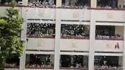 Học trò THPT Nguyễn Hiền quăng phao khắp sân trường sau khi