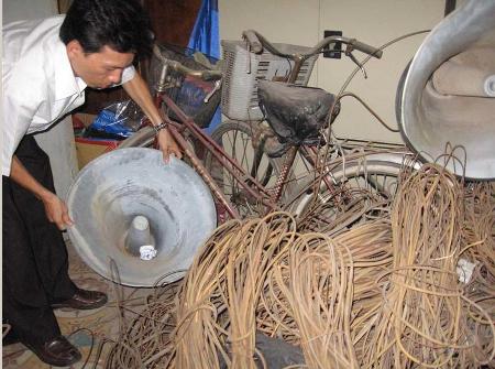 Những chiếc loa bị hỏng và dây điện bị người dân “liều mình” cắt đứt.