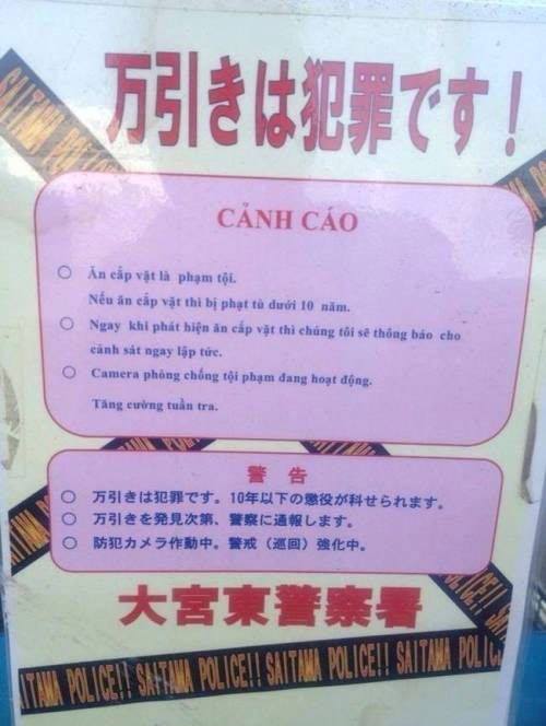 Hay những tấm bảng CẢNH CÁO VỀ TỘI PHẠM TRỘM CẮP:
