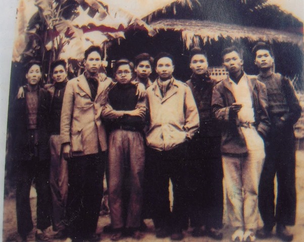 Tại tòa soạn báo Sự Thật: (từ trái) Diên Hồng, Nguyễn Địch Dũng, Kỳ Vân, Lê Quang Đạo, Trần Đĩnh, Trường Chinh, Lê Xuân Kỳ, Thép Mới, Hồng Vũ (sau này tự tử ở bệnh viện Nam Ninh, Trung Quốc)- (hình do tác giả Trần Đĩnh cung cấp)
