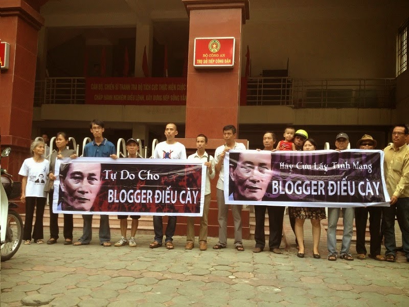 Mẹ con chị Dương Thị Tân cùng anh em Hà Nội đấu tranh cho blogger Điếu Cày