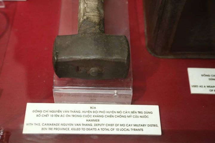 “HAMMER. WITH THIS, CAMARADE NGUYEN VAN THANG, DEPUTY CHIEF OF MO CAY MILITARY DISTRIS, BEN TRE PROVINCE, KILLED TO DEATTS A TOTAL OF 10 LOCAL TYRANTS.” (Chú ý phiên bản tiếng Anh sai văn phạm và ngữ vựng rất nhiều, nhưng không có nói đến “Chống Mỹ cứu nước”).