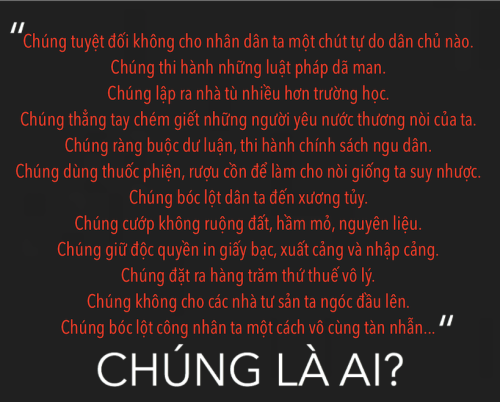 Chúng là ai mà tuyền những tội ác trời không dung đất không tha, hơn cả bọn mình người dạ thú kia, hơn cả lũ thực dân lẫn phát-xít gộp lại?