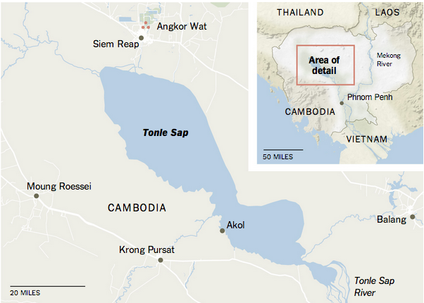 Bởi vậy, không có gì ngạc nhiên khi thỉnh thoảng chúng tôi lại bị mắc cạn giữa Biển Hồ. Mọi người phải nhẩy xuống nước cho ghe nhẹ bớt, rồi lôi nó ra những nơi có mực nước sâu hơn để tiếp tục chuyến đi. Khi hì hục như thế tôi chợt nhớ đến một câu nói một quen thuộc (“nước có thể nâng thuyền và cũng có thể lật thuyền”) mà không khỏi cảm thấy ngậm ngùi, cùng đôi chút đắng cay.