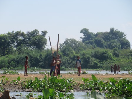 Mực nước ở Biển Hồ mà chúng tôi chứng kiến vào mùa khô vừa qua, nhiều nơi, không còn được nửa mét như hồi năm 2000 nữa. Có chỗ đã biến thành vũng cho trẻ con chơi đùa, hay hoá thành… sân chơi bóng chuyền rồi!