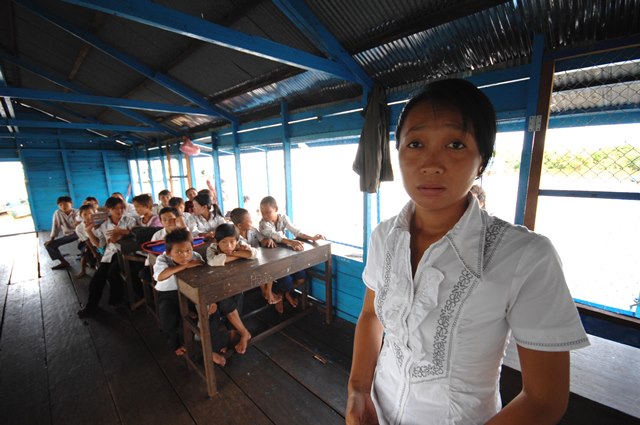 Cô giáo Tuyết Mai sống nơi xứ người đã năm năm. Trước đây, cô sống ở Cần Thơ khi ba mẹ đi làm ăn ở Biển Hồ. Sau khi tốt nghiệp trung học, gia đình gặp khó khăn, nên cô theo cha mẹ đi tha hương cầu thực và phải gián đoạn việc học. Ở vùng Biển Hồ, cô là cô giáo trường ‘thuyền’ vì lớp học nằm trên một chiếc thuyền con. “Tuy bà con Việt Nam mình ở đây rất không, nhưng giáo viên thì không có,” Tuyết Mai thuật lại. Cô giáo thì ít, nhưng hay bị đuổi vì theo lời cô, Ban Chi Hội (BCH) làm việc rất phức tạp. BCH do người Việt tổ chức. Có khi một năm, đổi giáo viên đến ba lần, đưa đến tình trạng các em không học hành đến nơi đến chốn được.