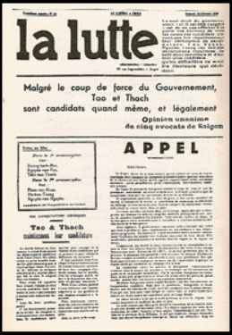 Cuộc đời đấu tranh cho «độc lập» chống cường quyền của thực dân Pháp gắn liền với nhóm La Lutte (Tranh Đấu). Nhóm La Lutte được thành lập năm 1933 tại Sài Gòn. Đây là một nhóm các nhà trí thức, theo Tây Học, lúc mới thành lập thuộc đủ mọi thành phần: CS Đệ Tam Đệ Tứ, Quốc Gia… chống thực dân, đòi quyền dân chủ cơ bản, truyền bá tư tưởng Cách Mạng, củng cố phong trào Công Nhân chống bóc lột. Vũ khí chính của họ là tờ báo Pháp Ngữ La Lutte.