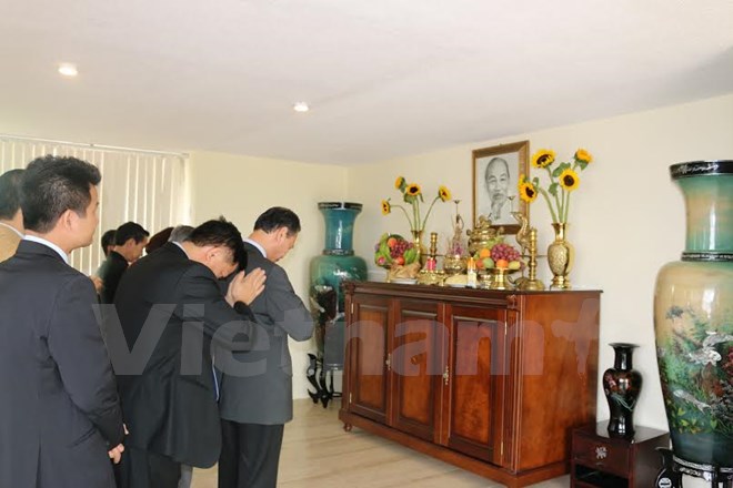 Dâng hương trước bàn thờ Bác tại Đại sứ quán