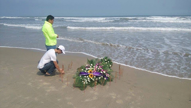 Chúng tôi làm các nghi lễ tưởng niệm và thắp hương, thả vòng hoa một cách trang trọng.