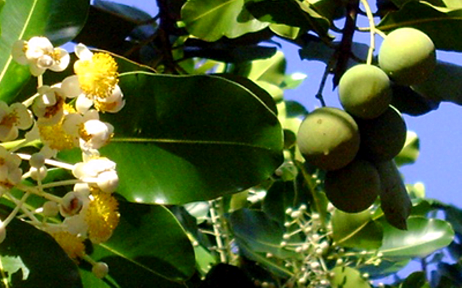 Mù u có tên khoa học Balsamia inophyllum L. còn có tên là Hồ đồng hay Cồng, tên chữ là Nam Mai, mọc vùng ven biển từ Ấn Độ dương, Thái Bình dương, Úc, Nam Phi… và các quần đảo tức là những vùng nhiệt đới trên thế giới. Florida rất nhiều mù u.