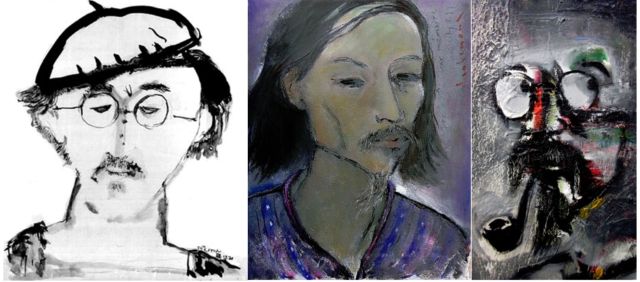 Chân dung Hoàng Ngọc Biên qua nét vẽ Nguyễn Quỳnh, (trái) Đinh Cường (giữa); Đỗ Trung Quân (phải)