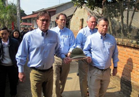 Vào ngày Thứ Ba, bốn cựu chiến binh Hoa Kỳ mang hoàn trả chiếc nón cối cho gia đình anh Hùng qua một nghi lễ tại một ngôi làng cách Hà Nội 70 cây số; với nghĩa cử đề cao nhu cầu hòa bình và hòa giải.