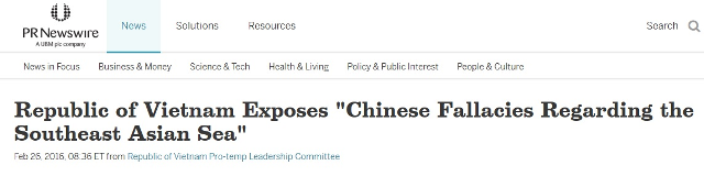 Bài nghiên cứu “Chinese Fallacies Regarding The Southeast Asian Sea” (“Những Ngụy Biện của Trung Hoa về Biển Đông Nam Á”) – đã được gởi đi nhiều nơi cuối tháng 2, 2016 đưa ra những chứng cứ và nghị luận lật tẩy Năm Ngụy Biện của Trung Cộng đã và đang xử dụng trong âm mưu thâu tóm Biển Đông.