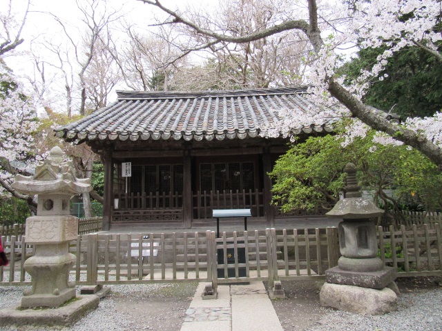 Du khách thắp nhang cầu nguyện trước tượng Phật không chùa. Tôi luồn qua phía sau mới thấy một ngôi chùa nhỏ có rào cản chỉ được nhìn từ xa. Trong chùa vắng lặng, không có một chỉ dấu nào là có sự sống. Nhìn vào tấm bia ghi ở phía ngoài mới biết ngôi chùa nhỏ này trước đây được dựng trong hoàng thành ở Seoul, Đại Hàn. Chùa được ông Kisel Sugino tặng vào năm 1924. Tôi ngồi trên một tảng đá phía trước chùa. Phong cảnh yên tĩnh lạ thường. Phía trước nơi có tượng Phật khổng lồ nhộn nhịp thiện nam tín nữ, phía sau nơi ngôi chùa nhỏ bé này vắng bóng người. Hình như thế gian thường tình chỉ chuộng những gì to lớn vĩ đại! Tôi chụp được vài bức hình có hoa anh đào ngả vào tượng.
