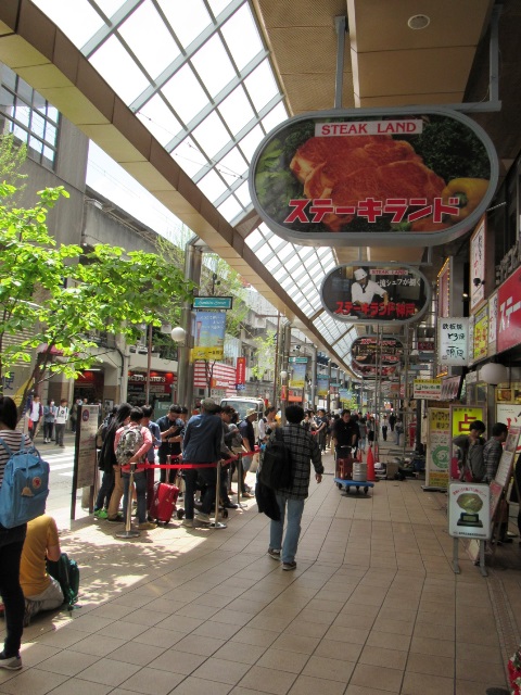 Thưởng thức xong món thịt bò Kobe mong đợi từ lâu, chúng tôi hân hoan ra về. Lúc ra mới thấy quang cảnh chung quanh. Trước đó chắc miếng thịt bò tuyệt vời đã che mắt chẳng thấy chi. Hàng người xếp hàng từ trong ra ngoài đông nghẹt. Ngoài vỉa hè họ căng dây thành từng khối người, mỗi khối cũng cả vài chục nhân mạng. Tôi đếm ít ra cũng cả trăm người đang chờ diện kiến miếng thịt bò!