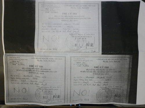 Ba cha con ông Tuấn ghi chữ “NO” vào thẻ cử tri và