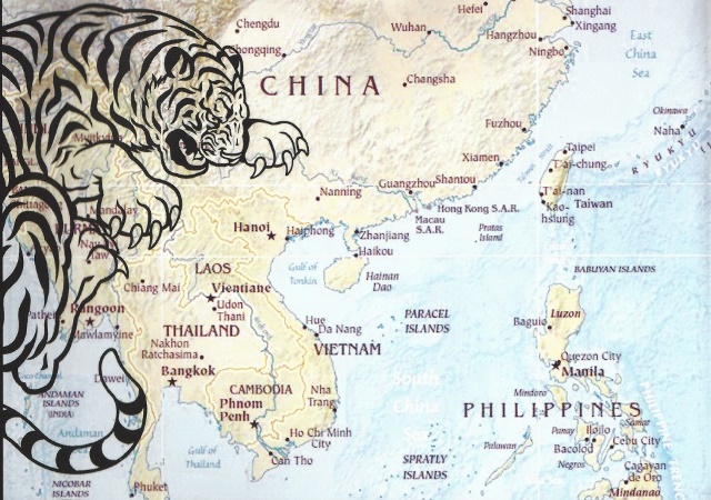 Ở biển Nam Hoa, Trung Quốc đã “thái dồi” xong quần đảo Hoàng Sa trong tay Việt Nam và ngang nhiên kéo những giàn khoan dầu nổi có cả hạm đội tàu chiến yểm trợ vào vùng biển mà Hà Nội vẫn xem là thuộc Việt Nam. Cùng một nước cờ, Trung Quốc cưỡng chiếm bãi đá ngầm Macclesfield Bank và bãi cạn Scarborough Shoal3 của Philippines, bãi cạn Thomas Thứ Nhì vẫn còn dằng dai trong vòng tranh chấp chủ quyền giữa đôi bên. Thậm chí Trung Quốc còn để mắt đến vùng biển giàu khí đốt thuộc quần đảo Natuna của Indonesia, cách xa Hoa lục cả nghìn dặm.